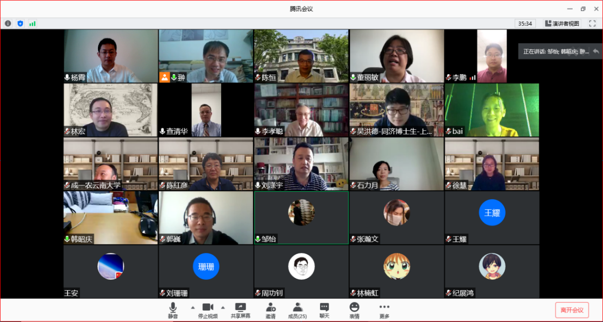 6月23日上午,由我校人文學(xué)院鐘翀教授擔(dān)任首席專家的國(guó)家社科基金重大項(xiàng)目“中國(guó)國(guó)家圖書館藏山川名勝輿圖整理與研究”開題論證會(huì)在騰訊會(huì)議平臺(tái)舉行。北京大學(xué)教授、上海師范大學(xué)特聘李孝聰先生,中國(guó)國(guó)家圖書館古籍館陳紅彥研究館員,云南大學(xué)成一農(nóng)研究員,北京林業(yè)大學(xué)郭巍教授,上海師范大學(xué)張劍光教授組成的專家組成的專家組以及子課題負(fù)責(zé)人出席會(huì)議。上海師范大學(xué)副校長(zhǎng)陳恒教授,社科處處長(zhǎng)董麗敏教授、副處長(zhǎng)石力月副教授,人文學(xué)院院長(zhǎng)查清華教授等也出席了開題論證會(huì)。