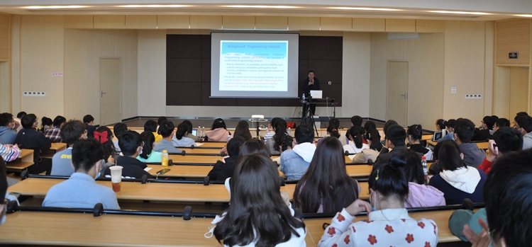 當(dāng)天,信機(jī)學(xué)院還特別邀請(qǐng)ACM程序設(shè)計(jì)大賽資深教練、復(fù)旦大學(xué)吳永輝副教授來(lái)校為本科生做講座“程序設(shè)計(jì)競(jìng)賽的系統(tǒng)訓(xùn)練”,通過(guò)深入淺出的講解為大家揭開(kāi)了ACM從培訓(xùn)到比賽的神秘面紗。講座得到了異常熱烈的反響,在隨后的ACM集訓(xùn)隊(duì)招新動(dòng)員中,現(xiàn)場(chǎng)報(bào)名的本科生、研究生超過(guò)100人。