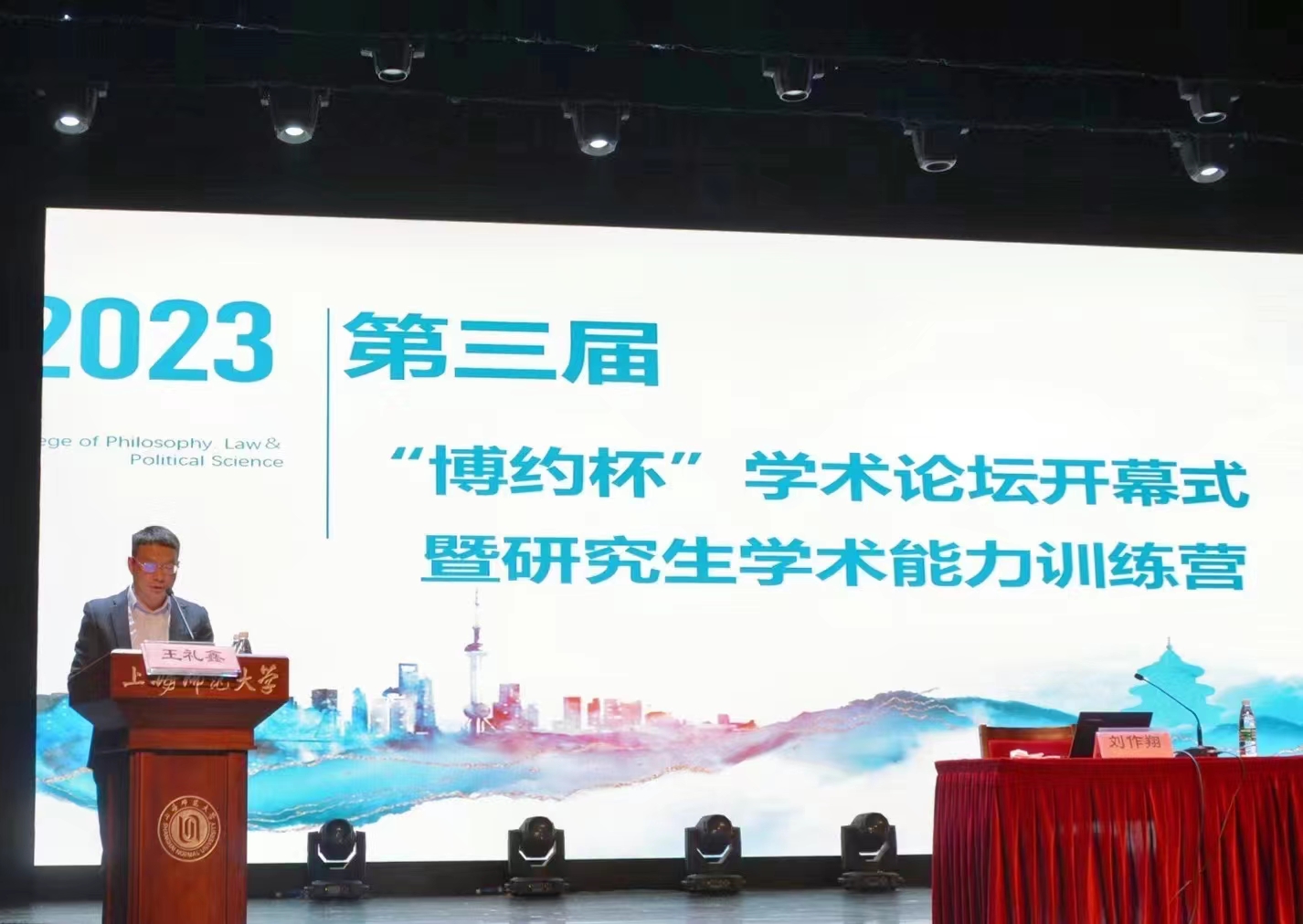 哲學(xué)與法政學(xué)院第三屆“博約杯”學(xué)術(shù)論壇開幕式暨研究生學(xué)術(shù)能力訓(xùn)練營于11月22日在徐匯校區(qū)東部音樂廳舉行。開幕式由哲學(xué)與法政學(xué)院副院長王禮鑫主持,學(xué)院黨委書記賀朝霞致辭,光啟學(xué)者、特聘教授劉作翔做主旨演講,學(xué)院2023級全體研究生出席。