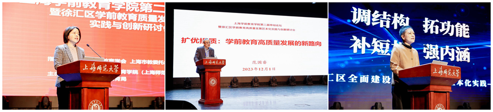 12月1日,上海學(xué)前教育學(xué)院第二屆申幼論壇暨徐匯區(qū)學(xué)前教育高質(zhì)量發(fā)展區(qū)本化實(shí)踐與創(chuàng)新研討會(huì)在我校成功舉辦。本次會(huì)議在上海教育學(xué)會(huì)、上海市教委托幼處的指導(dǎo)下,由上海學(xué)前教育學(xué)院(上海師范大學(xué)學(xué)前教育學(xué)院)、徐匯區(qū)教育局主辦,旨在深入探討上海學(xué)前教育高質(zhì)量發(fā)展背景下的理論突破、實(shí)證研究和實(shí)踐創(chuàng)新。上海市教委托幼工作處處長(zhǎng)孫鴻、副處長(zhǎng)王紓?cè)唬倚8毙iL(zhǎng)李曄、教育學(xué)部部長(zhǎng)范國(guó)睿,徐匯區(qū)教育工作黨委副書記、局長(zhǎng)王彤,徐匯區(qū)教育局三級(jí)調(diào)研員錢佩紅、上海市早期教育指導(dǎo)服務(wù)中心茅紅美、上海學(xué)前教育學(xué)院院長(zhǎng)高湘萍以及來自各區(qū)的幼教同仁和學(xué)院師生代表出席會(huì)議,開幕式由上海學(xué)前教育學(xué)院黨委書記唐潔主持。
