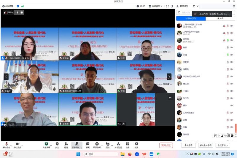 12月2日,由我校知識與價值科學研究所發起,上海師范大學、東華大學、安徽師范大學馬克思主義學院、山西師范大學馬克思主義學院、上海商學院馬克思主義學院、浙江金融學院馬克思主義學院、上海城建學院馬克思主義學院、上海旅游高等專科學校等單位共同承辦的“勞動幸福·人類發展·現代化”——第八屆全國勞動幸福馬克思主義論壇在上海舉行。此次論壇全部在線上進行,來自全國各地的400余名專家學者以騰訊會議方式參會。