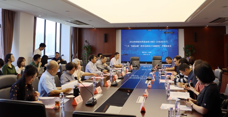 5月18日,由我校王雙成教授主持的國家社科基金重大項目“三大‘民族走廊’的多民族語言交融研究”(23&ZD317)開題報告會在光啟中心1103會議室舉行,中央民族大學戴慶廈教授、上海師范大學潘悟云教授、北京師范大學黃行教授、北京語言大學吳福祥教授、中國社會科學院民族學與人類學研究所王鋒研究員、中國社會科學院民族學與人類學研究所尹蔚彬研究員、云南民族大學劉勁榮教授、南開大學冉啟斌教授作為同行專家評議委員會成員出席開題會。
