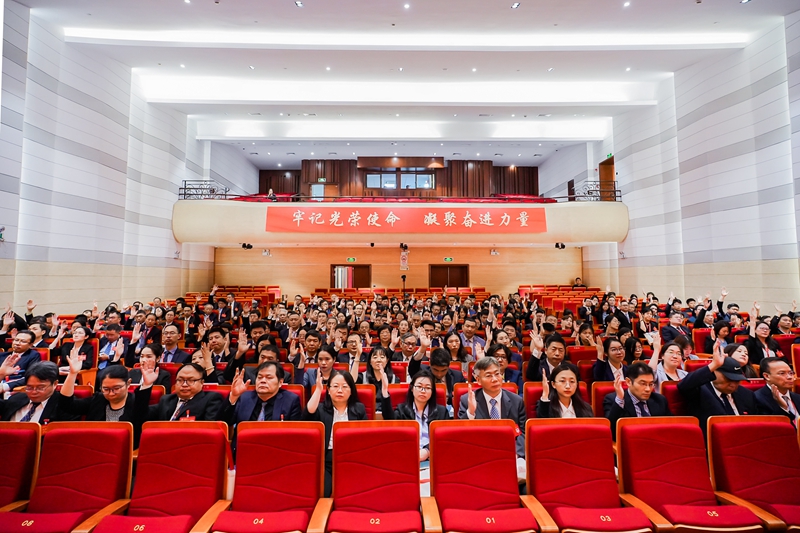 大會(huì)號(hào)召,全校各級(jí)黨組織、全體共產(chǎn)黨員和廣大師生員工要更加緊密地團(tuán)結(jié)在以習(xí)近平同志為核心的黨中央周圍,高舉習(xí)近平新時(shí)代中國特色社會(huì)主義思想偉大旗幟,深入學(xué)習(xí)貫徹黨的二十大精神,貫徹落實(shí)習(xí)近平總書記關(guān)于教育的重要論述,心懷“國之大者”,牢記光榮使命,弘揚(yáng)教育家精神,同心協(xié)力、頑強(qiáng)拼搏、開拓創(chuàng)新、奮勇前進(jìn),以更加昂揚(yáng)的精神狀態(tài)和奮進(jìn)姿態(tài),為建設(shè)教師教育領(lǐng)先的創(chuàng)新型高水平大學(xué),為加快建成具有世界影響力的社會(huì)主義現(xiàn)代化國際大都市,為強(qiáng)國建設(shè)、民族復(fù)興而團(tuán)結(jié)奮斗!