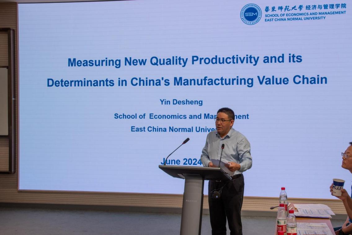 殷德生教授以“Measuring New Quality Productivity and its Determinants in China's Manufacturing Value Chain”為題做了主旨報(bào)告。殷德生教授報(bào)告圍繞新質(zhì)生產(chǎn)力測(cè)量展開(kāi),提供了關(guān)于新質(zhì)生產(chǎn)力測(cè)量的詳細(xì)方法和決定因素的深刻見(jiàn)解。殷德生教授在研究中選取了12個(gè)制造行業(yè),通過(guò)兩種非參數(shù)數(shù)據(jù)包絡(luò)分析方法,即產(chǎn)出導(dǎo)向和投入導(dǎo)向模型,分別分析在既定成本投入下如何實(shí)現(xiàn)更大的生產(chǎn)力以及同樣的技術(shù)投入下如何實(shí)現(xiàn)更高的產(chǎn)值。通過(guò)這兩種方法的相互驗(yàn)證,研究結(jié)果顯示新質(zhì)生產(chǎn)力在集成電路、電子通訊、計(jì)算機(jī)設(shè)備制造和生物醫(yī)藥四大類行業(yè)中表現(xiàn)較為顯著。不同地區(qū)的新質(zhì)生產(chǎn)力水平存在顯著差異。例如,北京、廣東、天津、江蘇、浙江、重慶等地區(qū)的新質(zhì)生產(chǎn)力水平較高,而陜西、四川、福建等地區(qū)則相對(duì)較低。在決定新質(zhì)生產(chǎn)力發(fā)展的因素分析中,殷德生教授指出,數(shù)字化轉(zhuǎn)型水平、產(chǎn)業(yè)鏈現(xiàn)代化水平和前沿技術(shù)研發(fā)水平是三大核心因素。殷教授進(jìn)一步指出,這些結(jié)論與今年兩會(huì)政府工作報(bào)告中李強(qiáng)總理提出的方向高度一致,即傳統(tǒng)產(chǎn)業(yè)鏈的升級(jí)、未來(lái)產(chǎn)業(yè)與戰(zhàn)略新興產(chǎn)業(yè)的發(fā)展以及數(shù)字經(jīng)濟(jì)的創(chuàng)新發(fā)展。