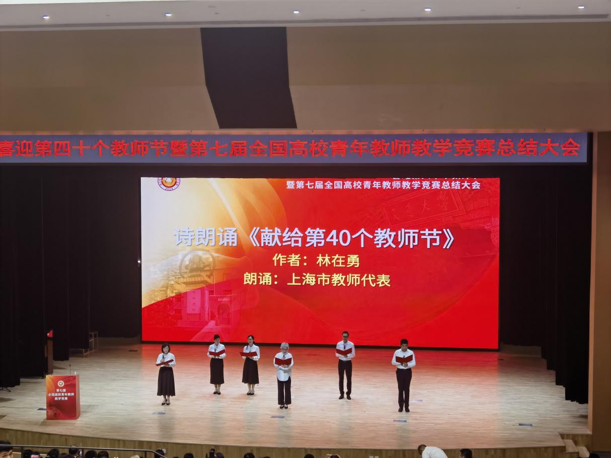 “喜迎第40個教師節暨第七屆全國高校青年教師教學競賽總結大會”于8月30日在上海交通大學舉行。會上,上海師范大學黨委書記林在勇創作的《獻給第40個教師節》由歷屆青教賽選手以詩朗誦的形式呈現。