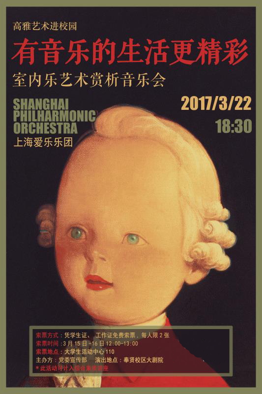 3月22日“高雅藝術進校園” 室內樂藝術賞析音樂會——“有音樂的生活更精彩”即將在上海師范大學奉賢校區大劇院舉辦。本次演出特邀上海愛樂樂團傾情出演,由著名音樂學家韓斌主持。這是一場精妙絕倫的聽覺盛宴,專家的現場解析,樂團的激情演奏,將給師生開啟一場回顧經典名曲的藝術之旅。