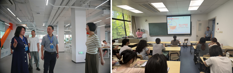 校領導與師生親切交流,慰問教學一線教師。在奉賢校區,袁雯一行走進四教A座教育學院教師教育課程《教育家精神》的課堂,袁雯激勵各位同學,希望同學們能夠充分了解教育家精神的核心,“心有大我,至誠報國”,心懷國家民族未來,肩負起培養下一代的“千鈞重擔”,將個人的職業追求融入實現中華民族偉大復興的奮斗中去,不斷追求卓越、勇于創新;之后來到奉賢校區圖書館、體育學院檢查工作,袁雯希望各部門以學生為中心,群策群力不斷改善教學設施,向學生們提供更優質的學習環境。