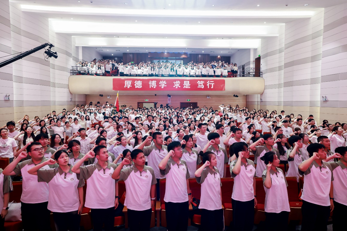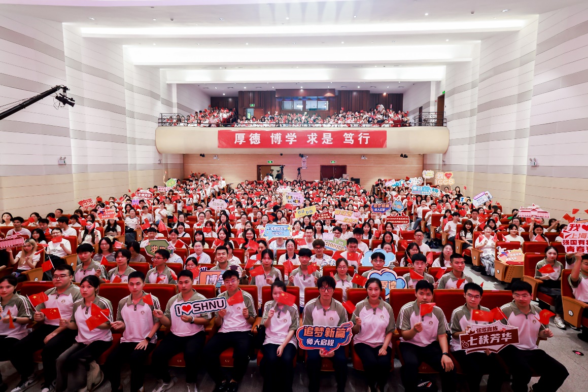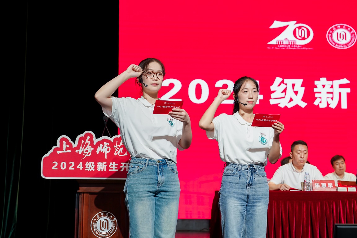 “努力成為創新精神和實踐能力的卓越教師和一流專業人才,為奮力推進中國式現代化貢獻青春力量!”在領誓人的帶領下,全體新生起立,高舉右拳,齊聲宣讀入學誓詞。朝氣蓬勃的青春面孔、昂揚向上的青春姿態、鏗鏘有力的青春誓言、彰顯出作為新師大人的志向與信念。