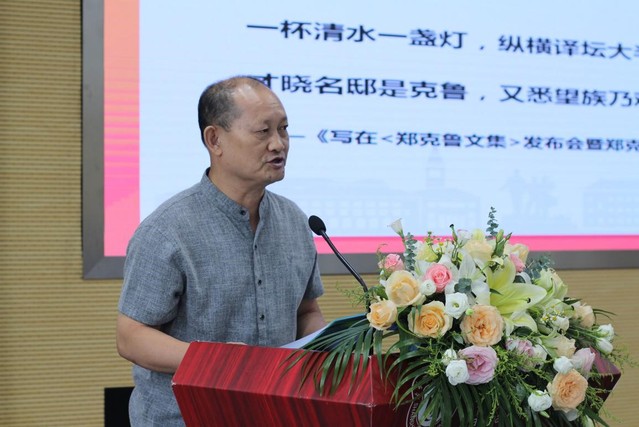 陳恒高度評價鄭克魯先生的學術地位。他指出,鄭先生學貫中西、融通古今,是中外文化交流史上空前絕后的大家。在地方高等院校出現如此大師巨匠,實屬罕見,鄭克魯先生的成就,已經成為中國學術界極其珍貴的“鄭克魯現象”。陳恒將鄭先生類比浙江大學前校長竺可楨,進而指出“鄭克魯現象”對當前的中國需要何種高等教育、需要何種學術研究等問題,做出了最佳回答。中國社會科學院學部委員陳眾議研究員、中國翻譯協會常務副會長許鈞、上海市作家協會黨組書記王偉高度贊揚了鄭先生在翻譯、學術等方面的前瞻性,認為鄭先生實現了生命不息、翻譯不止的崇高境界。他們在致辭中提到,本次會議將會對外國文學研究的發展提供啟迪,為翻譯人才的培養提供動力。查清華高度評價了鄭先生在翻譯、學術、育人三方面遺留下的寶貴財富,他希望人文學院能夠繼承和發揚鄭先生的治學精神,將鄭先生作為旗幟性的代表人物,弘揚和傳承鄭先生遺留下的寶貴精神財富。茆訓誠代表商學院感謝與會嘉賓的支持,他認為鄭先生一生低調,終生儉樸,始終是一位謙卑的長者,體現了前輩學人的學術骨氣與學術正氣,在低調中又具備奢華,是上海師范大學歷史上永不磨滅的榮耀。