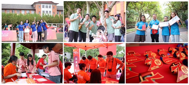 本次活動(dòng)由上海趣游文化旅游發(fā)展集團(tuán)有限公司贊助,同時(shí)得到了各學(xué)院、團(tuán)委、檔案館、保衛(wèi)處、后勤實(shí)業(yè)中心等部門(mén)的通力協(xié)作與支持。本次活動(dòng)招募志愿者100余名,他們身著統(tǒng)一的志愿者服裝,活躍在校園各處打卡點(diǎn),為校友們提供熱情周到的服務(wù)。