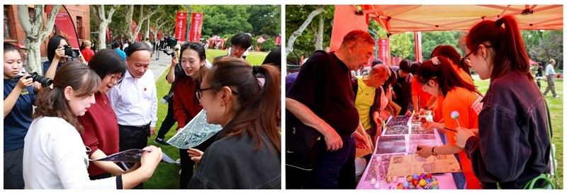 今年的校園尋訪活動(dòng)吸引了眾多校友與在校師生的熱情參與,場(chǎng)面火爆。從徐匯到奉賢,校園內(nèi)的每一個(gè)角落都充滿了歡聲笑語(yǔ)。各個(gè)學(xué)院和社團(tuán)精心設(shè)計(jì)的打卡點(diǎn)各具特色,既有傳統(tǒng)文化的深度體驗(yàn),也有現(xiàn)代科技的炫酷展示,更有藝術(shù)創(chuàng)作的靈感碰撞。校友們手持集章地圖冊(cè),漫步于熟悉的校園小徑,尋找那些藏著青春記憶的打卡點(diǎn)。 “有趣、有料、有情懷”,校友們?cè)跉g聲笑語(yǔ)中感受著母校的變化與成長(zhǎng)。