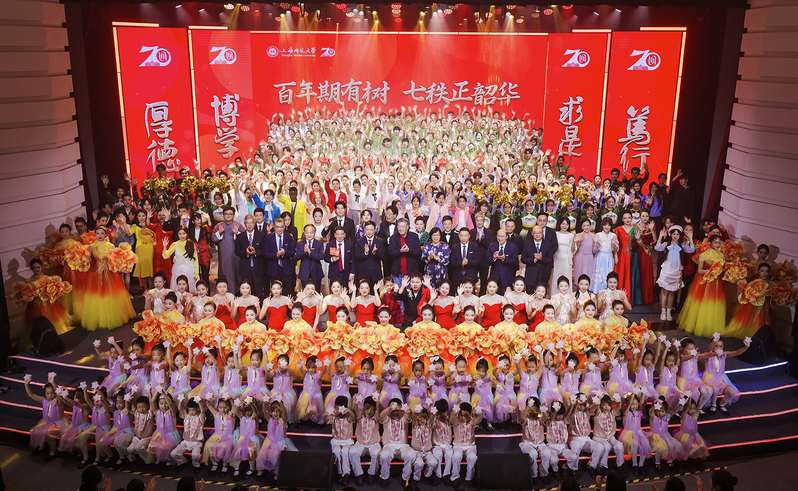 10月15日晚,“百年期有樹 七秩正韶華”上海師范大學建校70周年辦學成果展演在徐匯校區(qū)霞棐劇院傾情上演。來自華南師范大學、南京師范大學、福建師范大學等全國30余所師范院校、海內外高校領導,全體校領導,處級干部,學校歷年作出重要貢獻的教師代表,離退休老同志代表,本研學生和附屬學校師生代表,海內外校友代表以及網絡直播平臺26萬名師生、校友,共同慶祝上海師范大學七秩華誕。