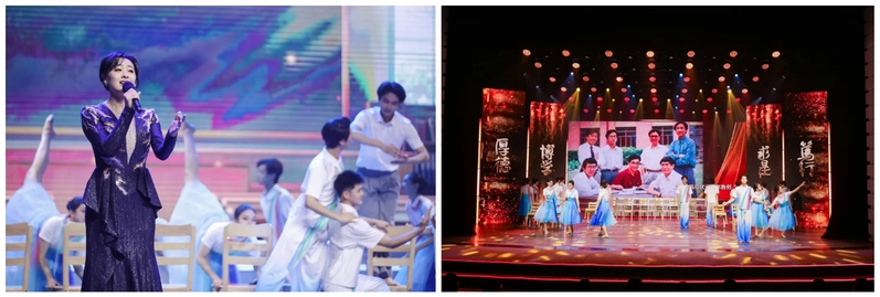本次展演由音樂學院副教授苗小龍擔任總導演,影視傳媒學院副教授韓曉曄擔任導演。舉全校之力,立足辦學特點,發(fā)揮聲樂、舞蹈、播音主持、表演、錄音科技、器樂、廣播電視編導、書法、信息工程、體育教育等專業(yè)優(yōu)勢,組建了音樂、影傳等學院300余名師生共同參與的演職團隊,體現(xiàn)了學校跨學科、跨專業(yè)的學科特點和辦學優(yōu)勢,展現(xiàn)了全體上海師大人站在新的歷史起點上,牢記光榮使命,凝聚奮進力量,為建設教師教育領先的創(chuàng)新型高水平大學努力奮斗的堅定信念和精神風貌。