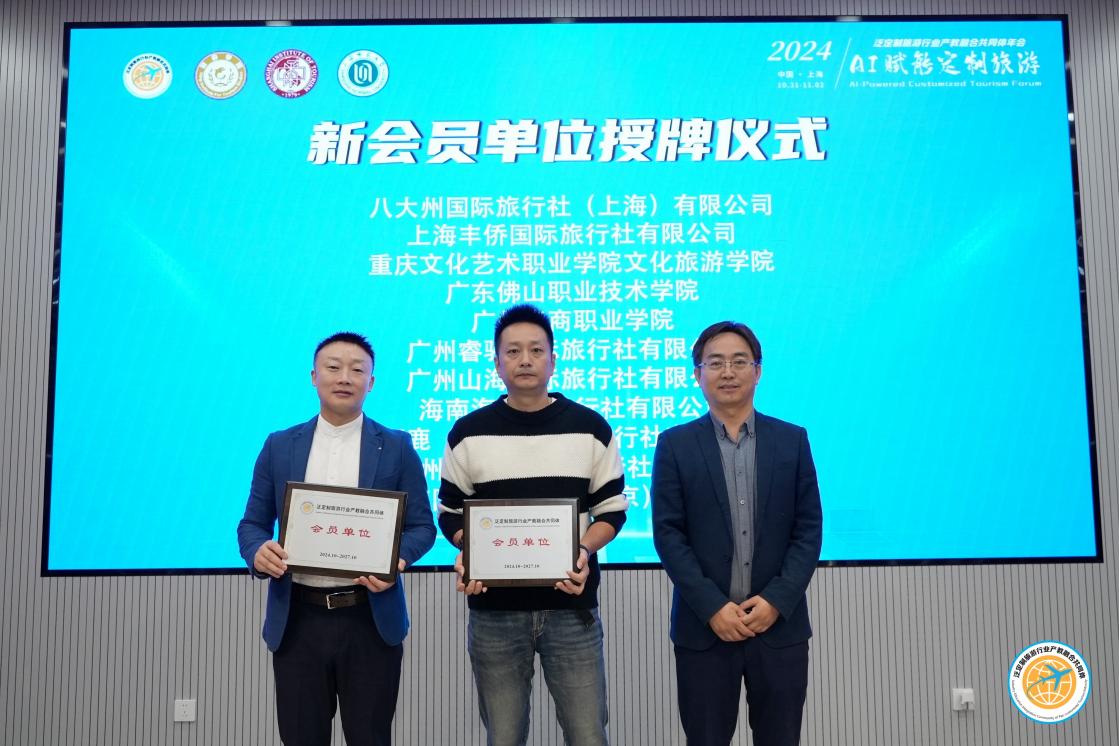 泛定制旅游產教融合共同體秘書長、我校旅游學院教師毛潤澤為新會員代表授牌。