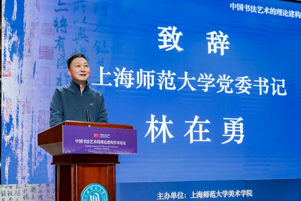 林在勇在開幕致辭中對各位嘉賓、專家表示熱忱歡迎。他指出,在上海師范大學建校70周年之際,召開中國書法藝術理論領域的學術論壇,體現出我校在主動回應時代關切、加強中國書法學科建設等方面作出的努力。希望以此次論壇為契機,從學術視角闡述書法藝術的內部構造、學科邊界等問題,進一步弘揚中華傳統優秀文化,為全社會美育建設貢獻力量。