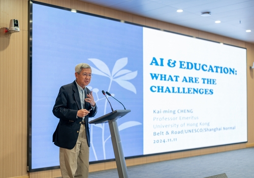 最后,香港大學教育學院榮休教授程介明作題為《AI and Education:What are the real challenges?》的報告,通過多個形象生動的小故事引發了與會者對教育本質的思考,強調教育并非培養人力資源,而是教會學生適應不斷變化與不可預測的未來,最后引出AI絕非教育面臨的唯一挑戰。