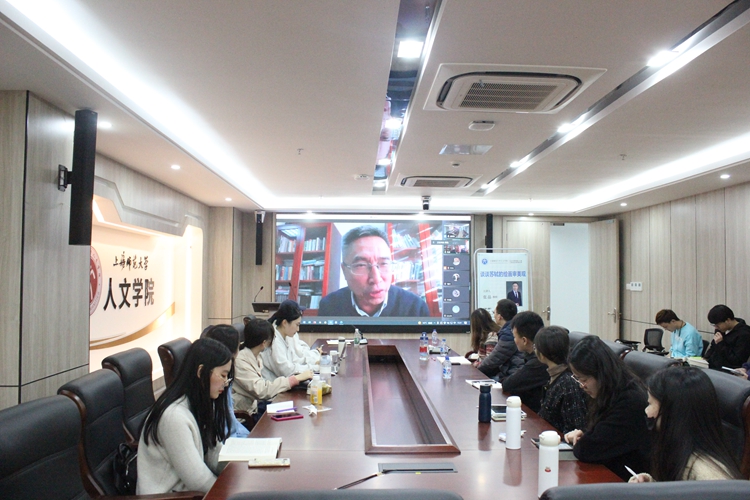 11月12日下午,中國傳媒大學(xué)資深教授、人文學(xué)院院長、北京市美育與文明研究基地主任兼首席專家、北京市習(xí)近平新時代中國特色社會主義思想研究中心中國傳媒大學(xué)基地首席專家張晶教授做客上海美育大講堂,作《談?wù)勌K軾的繪畫審美觀》為題的精彩講座。講座以線上和線下結(jié)合的形式開展,吸引了200余名師生。本次講座由上我校團委書記潘黎勇主持。