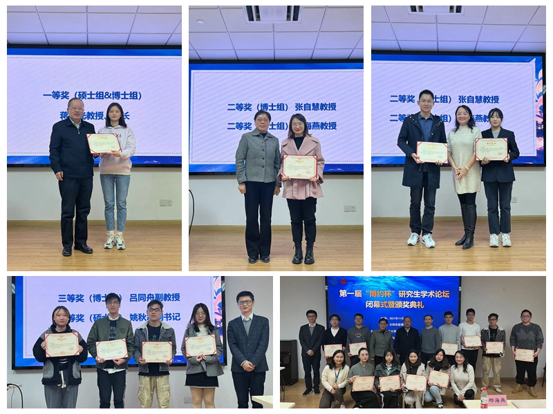 11月10日,在東部文科實驗樓802室舉行了第一屆“博約杯”研究生學術論壇閉幕式暨頒獎典禮閉幕式,閉幕式上,學院研究生團總支書記樊青青簡單回顧了本屆論壇,張自慧教授、邢海燕教授、呂同舟副教授向同學們分享了科研經驗與論文寫作技巧。隨后,院長蔣傳光教授致辭。他對同學們的論文水平表示贊許,同時也表達了對哲法學子學術水平的殷切期望以及對本屆論壇的認可。與會嘉賓分別為獲獎論文作者頒發獲獎證書,最終選出博士組一等獎1篇,二等獎1篇,三等獎1篇,碩士組一等獎1篇,二等獎2篇,三等獎4篇,碩博士優秀獎11篇。蔣傳光同時宣布本屆“博約杯”研究生學術論壇的21篇優秀論文將集結合訂為“博約集”,作為本學年哲法學院研究生學術活動的一個重要成果。