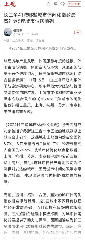 吳文智表示,休閑已是人們衡量生活美好的關(guān)鍵指標(biāo)之一,休閑化也是每一個(gè)旅游城市高質(zhì)量發(fā)展必然過程,休閑化指數(shù)更是衡量未來城市宜居宜業(yè)、宜步宜游的重要參照。本論壇發(fā)布的休閑化指數(shù)意義重大,對(duì)未來城市更新,人民城市建設(shè)、公園城市建設(shè),以及數(shù)字城市建設(shè)都有重要的啟示意義,以上海為龍頭的長(zhǎng)三角地區(qū),也應(yīng)在未來城市建設(shè)、城市數(shù)字化發(fā)展方面樹立標(biāo)桿。