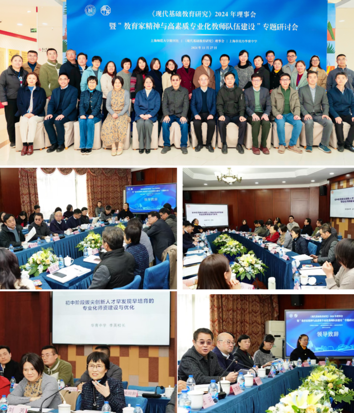11月27日,“教育家精神與高素質(zhì)專業(yè)化教師隊(duì)伍建設(shè)研討會(huì)暨《現(xiàn)代基礎(chǔ)教育研究》2024年理事會(huì)”在上海市民辦華育中學(xué)召開。上海師范大學(xué)原副校長/上海城建職業(yè)學(xué)院院長張崢嶸教授、上海市上海中學(xué)校長馮志剛、上海教育出版社副社長劉芳以及上海教育報(bào)刊總社副社長趙玉平出席會(huì)議并致辭。30余位上海市知名中小學(xué)校長參加了會(huì)議。