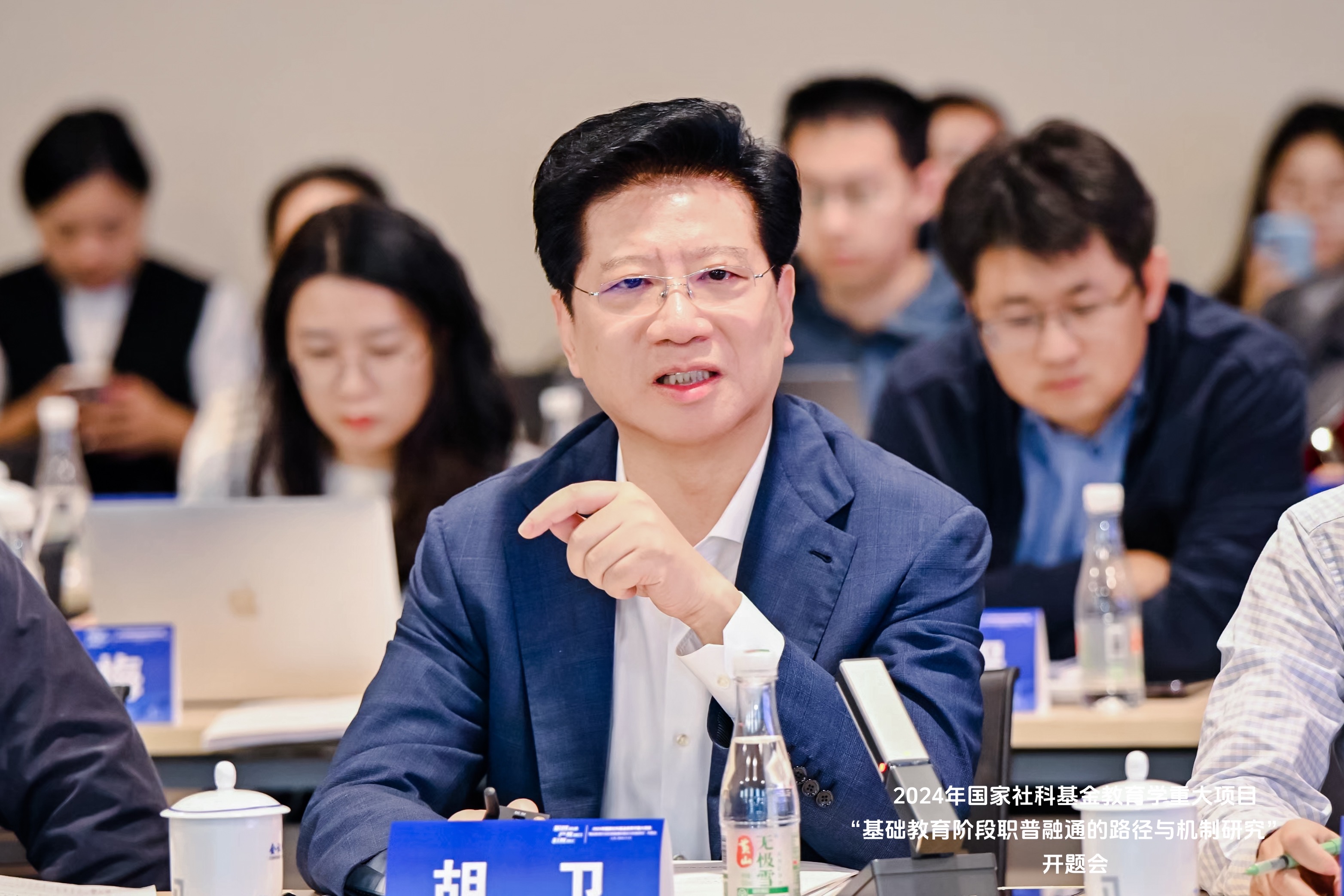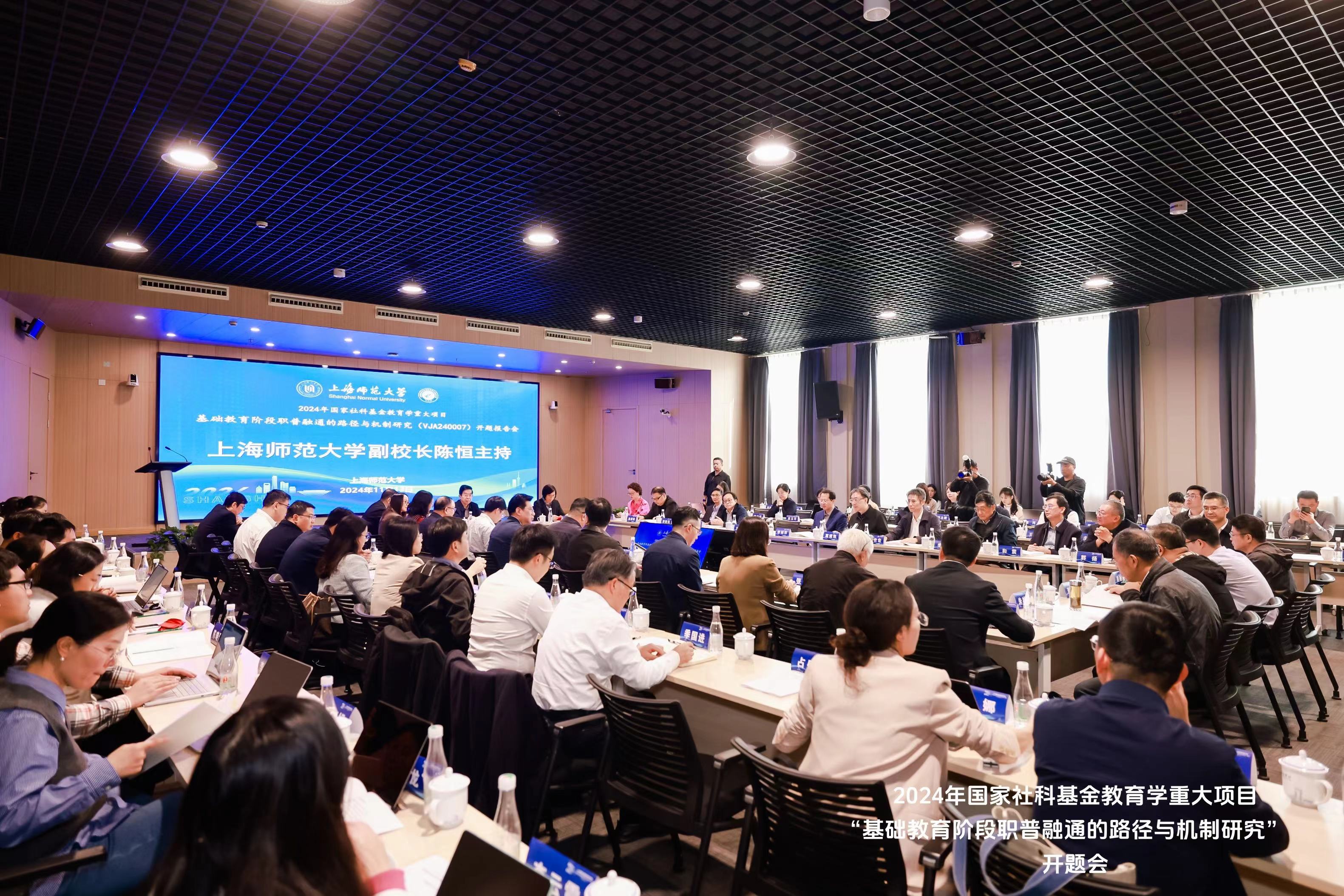 11月13日,由上海市政府參事、長(zhǎng)三角教育發(fā)展研究院院長(zhǎng)胡衛(wèi)領(lǐng)銜的2024年國(guó)家社科基金教育學(xué)重大項(xiàng)目“基礎(chǔ)教育階段職普融通的路徑與機(jī)制研究”(項(xiàng)目批準(zhǔn)號(hào)VJA240007)開(kāi)題報(bào)告會(huì)在聯(lián)合國(guó)教科文組織教師教育中心召開(kāi)。民進(jìn)中央副主席、上海市政協(xié)副主席、民進(jìn)上海市委主委、長(zhǎng)三角教育發(fā)展研究院理事長(zhǎng)黃震,上海師范大學(xué)校長(zhǎng)、長(zhǎng)三角教育發(fā)展研究院副理事長(zhǎng)袁雯出席并講話。受全國(guó)教育科學(xué)規(guī)劃領(lǐng)導(dǎo)小組辦公室授權(quán)委托,天津市政協(xié)副主席、天津市教育科學(xué)研究院院長(zhǎng)李劍萍擔(dān)任開(kāi)題報(bào)告會(huì)專家組組長(zhǎng)。上海師范大學(xué)副校長(zhǎng)陳恒和評(píng)議專家組組長(zhǎng)李劍萍分別主持開(kāi)題報(bào)告會(huì)致辭環(huán)節(jié)和評(píng)議環(huán)節(jié)。