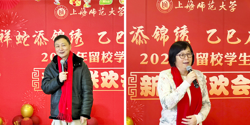 乙巳蛇年春節,是春節申遺成功后的第一個春節。校黨委書記林在勇向留校學生送上新春祝福。他表示,學校就是同學們的家,全體教職工就是大家的家人,學校會一直陪伴著大家,希望留校師生能在師大過一個溫暖又難忘的春節;祝愿大家在新的一年里學業有成,身體健康,萬事如意!校長袁雯為師生送上新年寄語。她表示,過去的一年,全校師生攜手奮進,上海師大在諸多領域都展現出蓬勃向上的態勢;在新的一年里,希望同學們能夠繼續保持積極向上的精神風貌,努力學習,不斷進取,為實現個人夢想和學校發展目標而不懈奮斗。