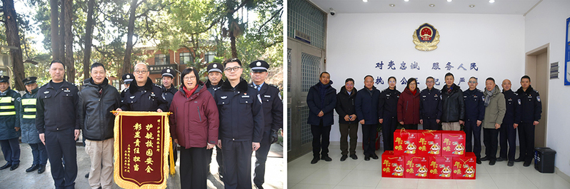 在海灣高校派出所、滬西派出所、保衛處,校領導感謝派出所民警和保安隊員始終堅守崗位,為校園安全保駕護航,向他們致以崇高敬意,并囑咐他們一如既往地做好假期值守,牢記責任擔當,提高安全防范意識,認真做好重要場所、重要設施安全檢查工作,確保師生度過一個歡樂祥和、平安健康的假期。