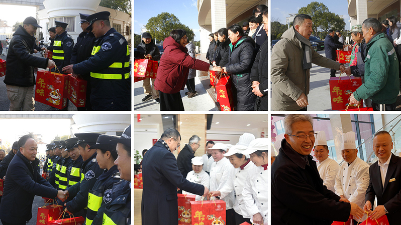 祥蛇添錦繡,乙巳啟華章。1月27日,在乙巳蛇年新春之際,校領導林在勇、袁雯、朱惠軍、蔣明軍、陳恒、曹光明與相關職能部門負責人,分別走訪了海灣高校派出所、滬西派出所、保衛處、后勤服務中心、接待中心等,慰問堅守在崗位上的一線教職員工,向他們表示誠摯的謝意,并對即將到來的新春佳節送上誠摯的祝福。