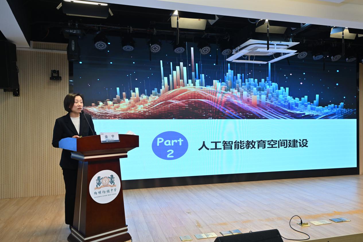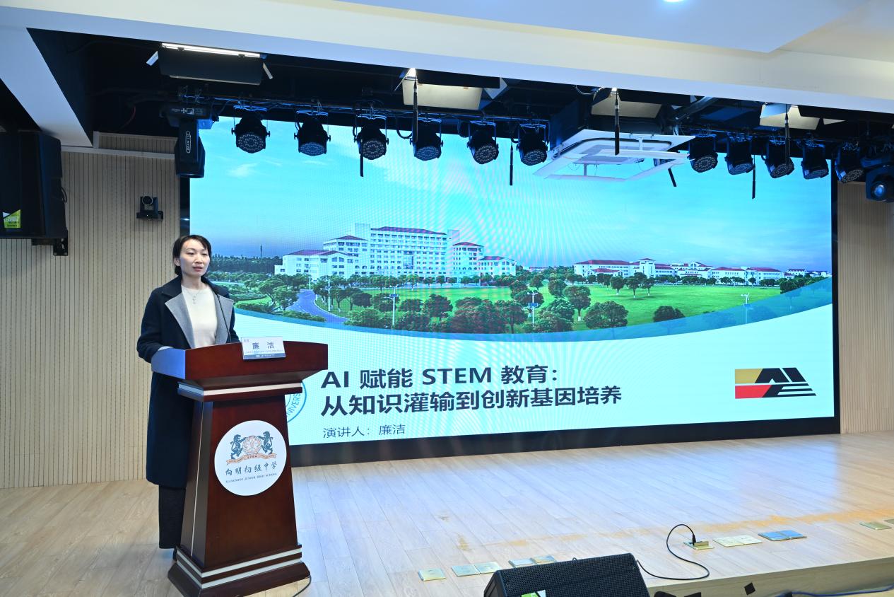雙方代表簽署了合作協(xié)議,并共同為“上海師范大學(xué)STEM教育交叉技術(shù)創(chuàng)新研究中心(向明教育集團(tuán)分中心)”揭牌。信機(jī)學(xué)院計(jì)算機(jī)系副主任廉潔、向明初級中學(xué)副校長金宇分別作了主題演講。圍繞“AI賦能STEM教育”這一主題,深入探討了人工智能時代教育創(chuàng)新的發(fā)展方向,為現(xiàn)場師生帶來了前沿教育理念的深度思考。