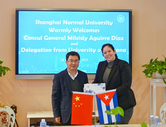 梅來迪總領事簡要回顧了中古兩國友好往來的發展歷程,特別指出今年是中古建交65周年,作為拉丁美洲首個與新中國建交的國家以及拉美地區第一批加入“一帶一路”倡議的國家之一,古巴同中國始終保持著密切的聯系。同時,古巴始終將教育視為國家發展的基石,總領館將積極推進哈瓦那大學與上海師范大學的交流與合作。