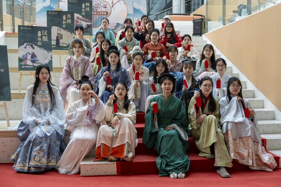 在三月初三中國傳統女兒節到來之際,我校奉賢校區大學生綜合發展與現代服務中心(新大活)迎來了一場穿越時空的中華優秀傳統文化體驗活動。唐裝翩躚、漢服流轉、香牌凝香、顧繡傳情,還有萬千心愿在桃枝上搖曳,師大的女大學生們身著漢服沉浸式感受中華優秀傳統文化之美。