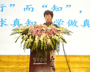 中國倫理學會教育倫理專業委員會主任、我校王正平教授在開幕式上致辭并主持第一階段會議。他指出中國特色的教育家精神是我們加強師德師風建設,培根鑄魂,努力建設新時代高素質專業化教師隊伍最寶貴的教育倫理資源。慈溪育才中學是“全國師德師風建設實踐示范基地”,一直十分重視學習和踐行陶行知的崇高師德品格。組織全國著名專家學者和教育工作管理者一起認真探討如何在新時代大力弘揚陶行知的偉大精神,加強師德師風建設,努力培養高素質專業化的教師隊伍,具有重要的思想理論價值和實踐意義。