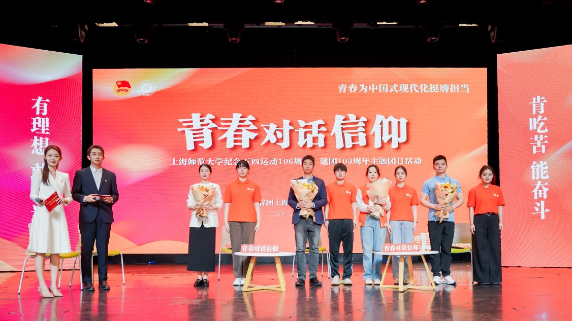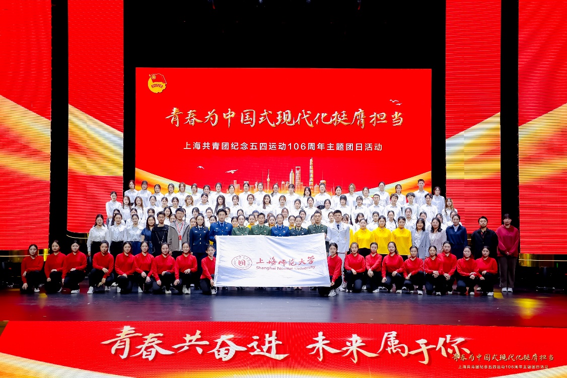 為深入學習貫徹習近平新時代中國特色社會主義思想,全面落實習近平總書記關于青年工作的重要思想,深入推進“大思政課”建設,激勵新時代青年在中國式現代化進程中挺膺擔當、砥礪前行,上海師范大學于4月30日在徐匯校區東部音樂廳隆重舉辦紀念五四運動106周年、建團103周年主題團日活動。團上海市委掛職副書記楊楊,校黨委書記林在勇,黨委副書記、副校長朱惠軍,以及各職能部門主要負責人,各學院分管學生工作副書記、負責人,校院兩級專兼職團干部、教師代表和團員青年代表等參與此次主題團日活動。