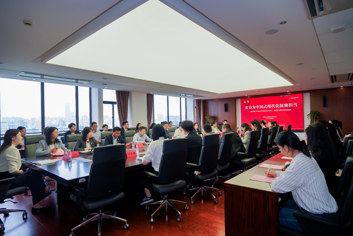 座談會上,相關職能部門負責人、青年教師代表、校院兩級專兼職團干部和青年學生代表圍繞時代使命與自身成長展開交流。習近平經濟思想專論課教師郝亮從學生的思想困惑和現實需求出發將思政課建設與黨的創新理論武裝同步推進;信息與機電工程學院計算機科學與技術系副教授楊茹通過分享帶領學生開展科研實踐的經歷闡述學校對于拔尖創新人才培養路徑的持續探索;校團委李現雷用自身在團上海市委機關掛職的真實事例分享團干部的多元培育。來自不同學院的八位青年學生代表通過分享自己在專業學習、科研競賽、社會實踐等方面的感悟為學校推進建設教師教育領先的創新型高水平大學建言獻策。