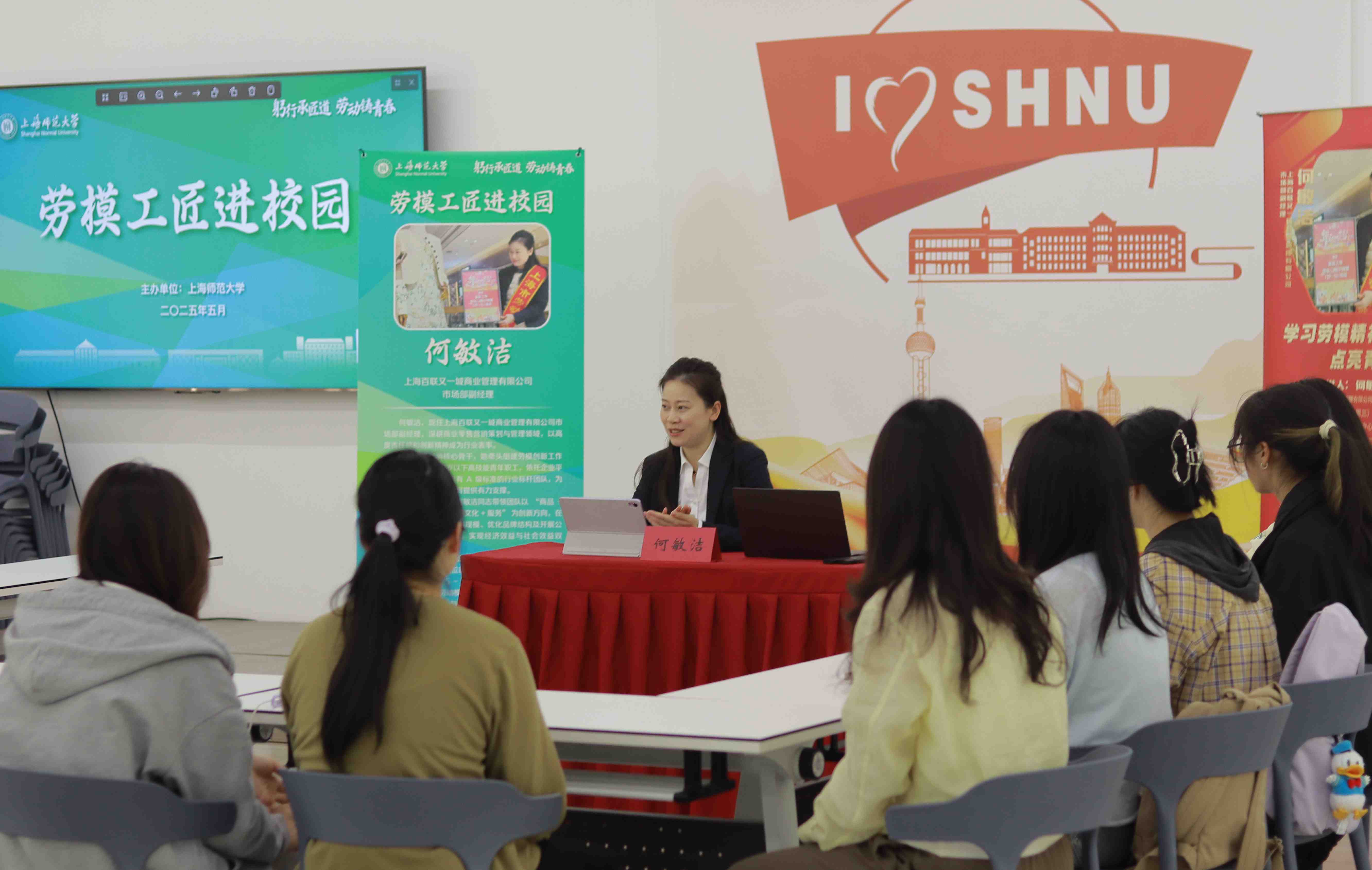 在“勞模工匠進校園”專場沙龍上,學校邀請全國輕工技術能手、上海市五一勞動獎章獲得者王施平,上海市國資委系統青年技術能手、上海市國資委青聯創新創意協會委員王邱平,上海市勞動模范、上海市五一勞動獎章獲得者何敏潔等百聯集團勞模工匠代表走進學生社區,以親身經歷為筆,以奮斗故事為墨,與學子開展“互動式”對話分享沙龍,在零距離的思想碰撞中,生動詮釋勞模精神、勞動精神與工匠精神。