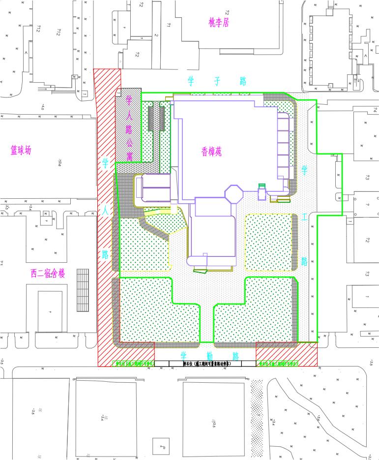1.施工區域搭設臨時圍擋(詳見附圖綠色粗線圍合區域)進行全封閉管理,非施工人員不得進入該區域,屆時學工路(學子路-學勤路路段)將無法通行,敬請繞道。