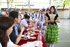 在精心布置的民族文化展示區,各民族特色繡花帽、精美唐卡等手工藝品琳瑯滿目;羊肉串、糌粑等民族美食香氣四溢,吸引師生駐足體驗。現場師生們不僅領略到各民族精湛的工藝技藝,更深刻感受到中華文化的多元一體。活動現場歡聲笑語不斷,各族師生在交流中增進了解,在互動中深化友誼,生動詮釋了"中華民族一家親"的深刻內涵。