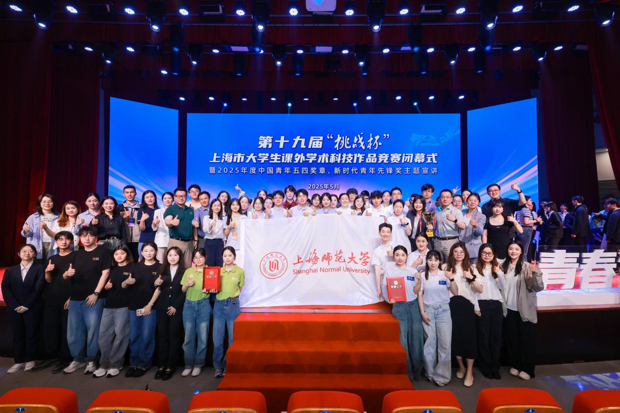 5月25日,第十九屆“挑戰杯”上海市大學生課外學術科技作品競賽決賽在上海工程技術大學落下帷幕。上海師大申報的14件作品全部獲獎,共獲得特等獎4項、一等獎5項、二等獎1項、三等獎4項。在全市所有參加比賽的高校中團體總分位列第五,力捧第十九屆“挑戰杯”市賽“優勝杯”。