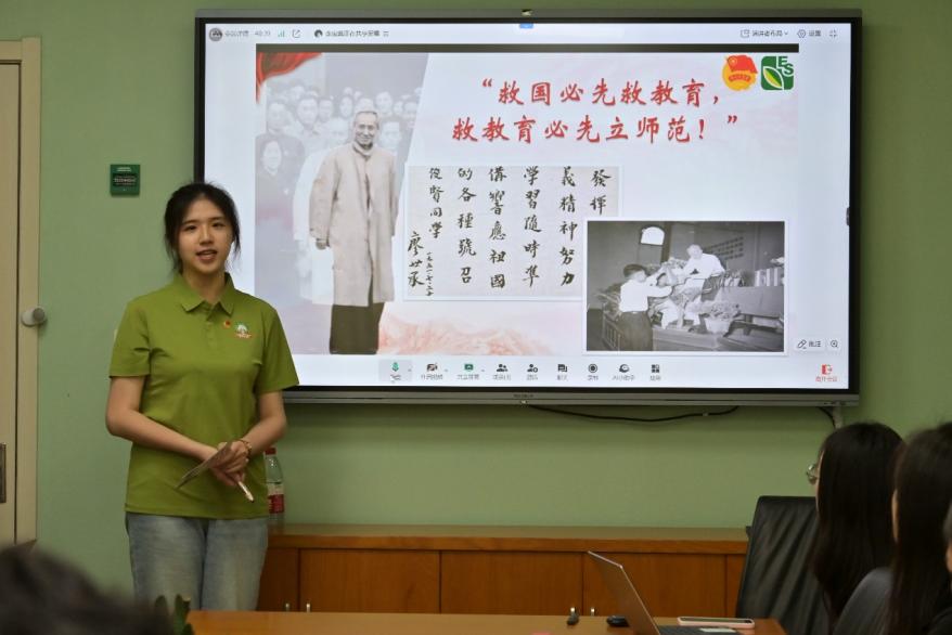 隨后,教育學(xué)院“弘揚教育家精神”學(xué)生宣講團(tuán)的同學(xué)們進(jìn)行宣講展示。王佳寧分享了廖世承先生致力于教育事業(yè)的故事,以及“學(xué)高為師,身正為范”的育人初心。李宛蓉則講述了黃大年教授始終將教育報國信念融入個人血脈,用一生培養(yǎng)了一代又一代科研與教育人才的感人事跡。
