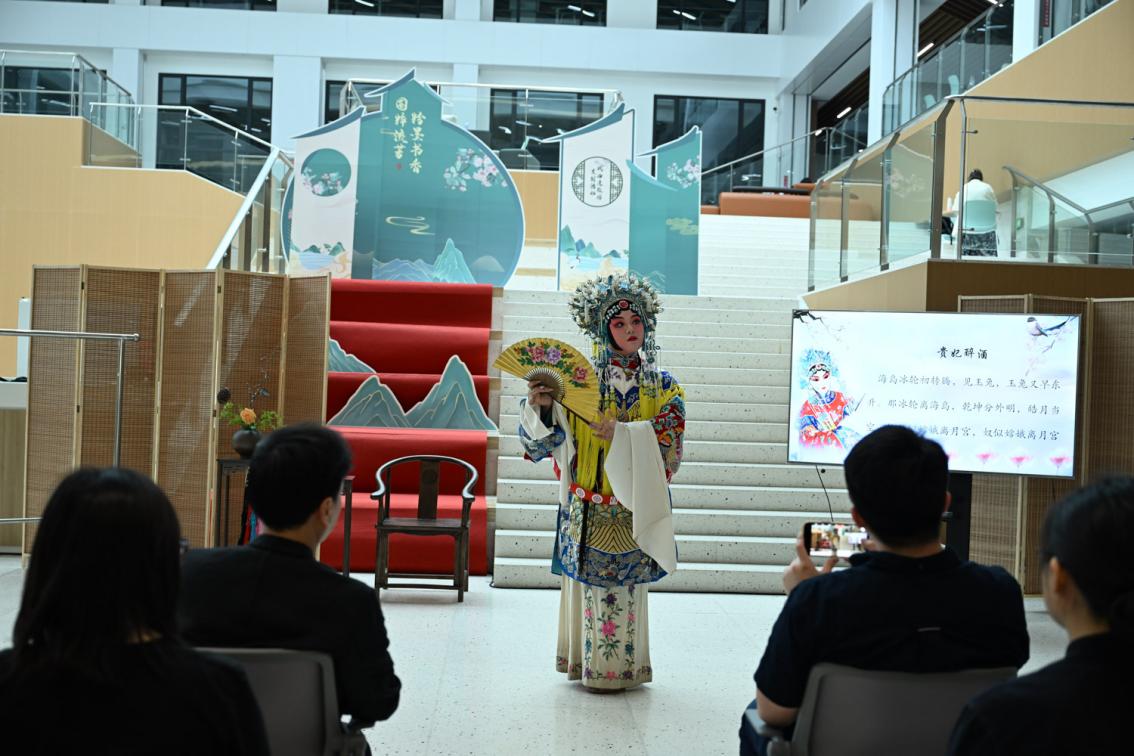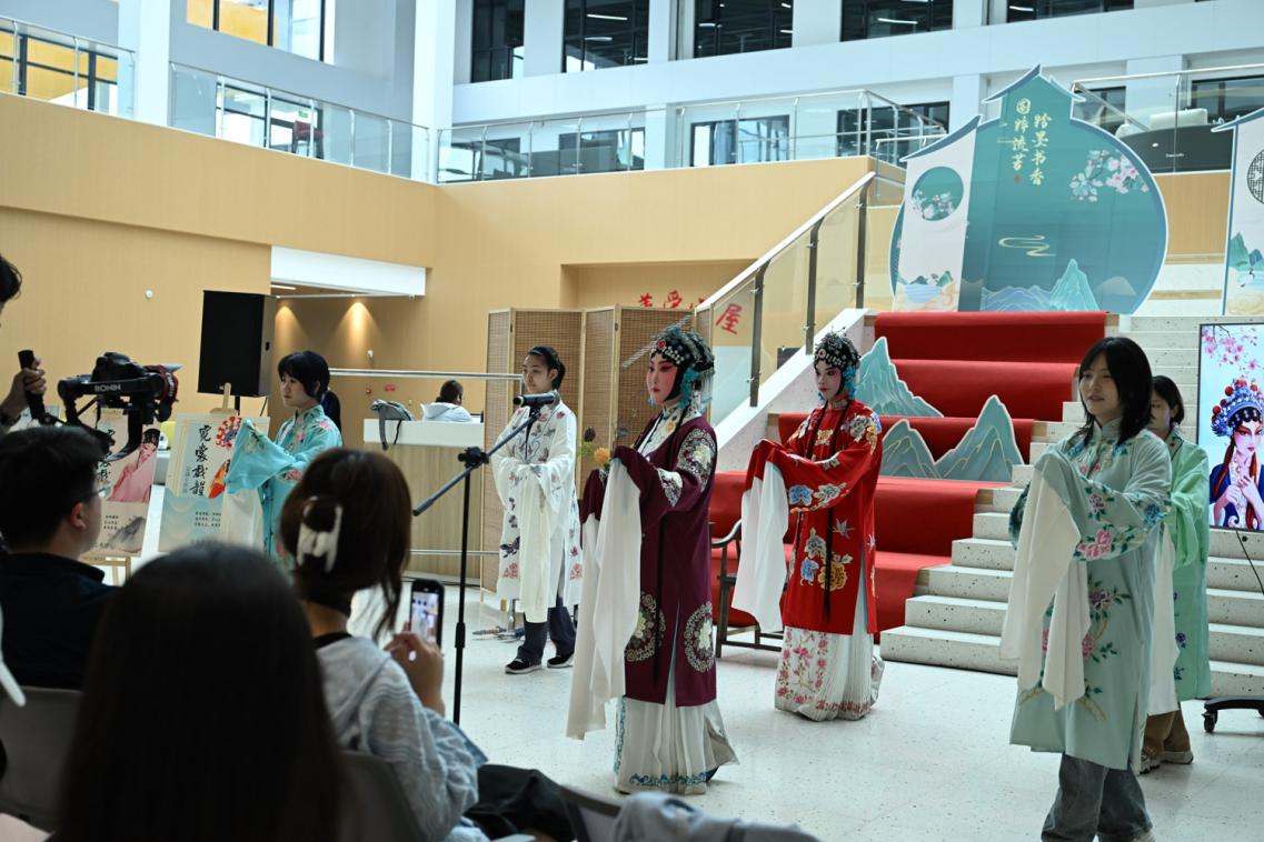 5月28日下午,“國(guó)粹流芳·粉墨書(shū)香”戲曲藝術(shù)進(jìn)校園成果展示體驗(yàn)活動(dòng)在奉賢校區(qū)大學(xué)生發(fā)展中心一樓大廳內(nèi)舉行。作為前期“戲曲藝術(shù)進(jìn)校園”系列活動(dòng)的精彩延續(xù)與成果匯聚,本次活動(dòng)通過(guò)學(xué)員展演、名家講堂、沉浸式體驗(yàn)三大板塊,吸引了近三百名師生熱情參與。現(xiàn)場(chǎng)互動(dòng)踴躍,傳統(tǒng)戲曲藝術(shù)的獨(dú)特魅力在青春校園中煥發(fā)出勃勃生機(jī)。