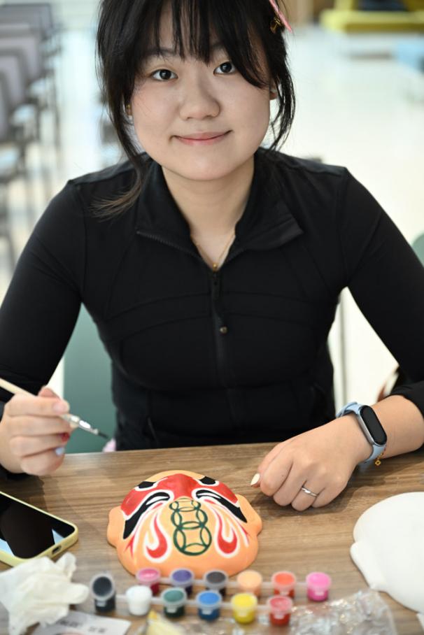 活動(dòng)的沉浸式體驗(yàn)區(qū)成為師生們親手觸碰非遺脈搏的樂(lè)園。妝造體驗(yàn)區(qū)前,學(xué)生們?cè)趯I(yè)老師指導(dǎo)下近距離感受戲曲裝扮的精妙絕倫。拍照打卡區(qū)內(nèi),參與者們紛紛模仿“亮相”“臥魚(yú)”等經(jīng)典身段,結(jié)合戲曲主題背景,實(shí)時(shí)生成獨(dú)具韻味的國(guó)風(fēng)大片。臉譜繪畫(huà)區(qū)則變身生動(dòng)的美學(xué)課堂,師生們繪制蘊(yùn)含“紅忠白奸”等象征意義的臉譜,感受著色彩帶給角色的獨(dú)特魅力。