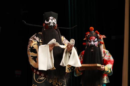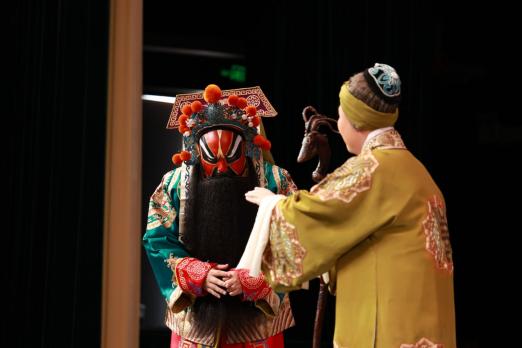 演出在明快俏皮的《賣水》中拉開帷幕。上海京劇院青年演員周芷如、周煒棋憑借扎實的功底與靈動的表演,將劇中角色刻畫得栩栩如生。她們輕盈的臺步、婉轉的唱腔,配合著活潑的劇情,瞬間點燃現場氣氛,引得臺下師生掌聲不斷。緊接著,《赤桑鎮》以極具張力的劇情和精彩的唱段震撼登場。青年演員岳琳、張建峰等默契配合,一句句鏗鏘有力的念白、一段段韻味十足的唱腔,傳遞出“忠”“孝”“義”的中華傳統美德,為同學們上了一堂生動的傳統文化思政課。