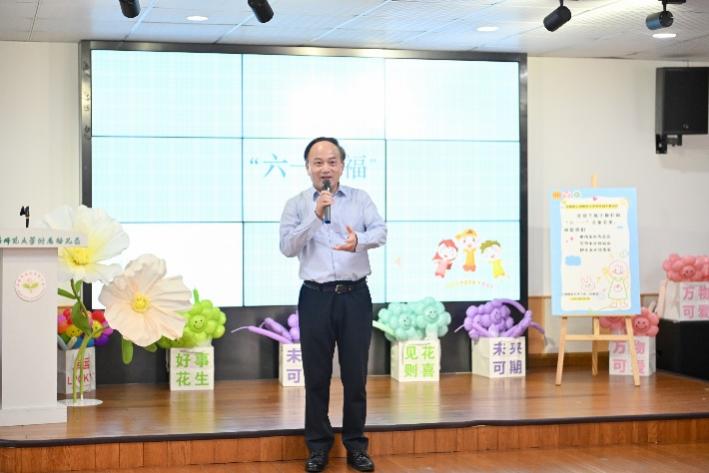 在多功能廳的慶祝活動現場,師生共慶“六一”。蔣明軍代表學校向小朋友們送上節日祝福,對附屬幼兒園教職工和家長們對學校工作的貢獻給予高度肯定,同時希望學校、幼兒園、家長共同攜手“松土澆水”,助力小朋友們茁壯成長。活動最后,學校領導們送上了精心準備的“六一”禮物,希望小朋友們開心歡度“六一”、健康快樂成長。慶祝活動在大家的歡聲笑語中圓滿結束。