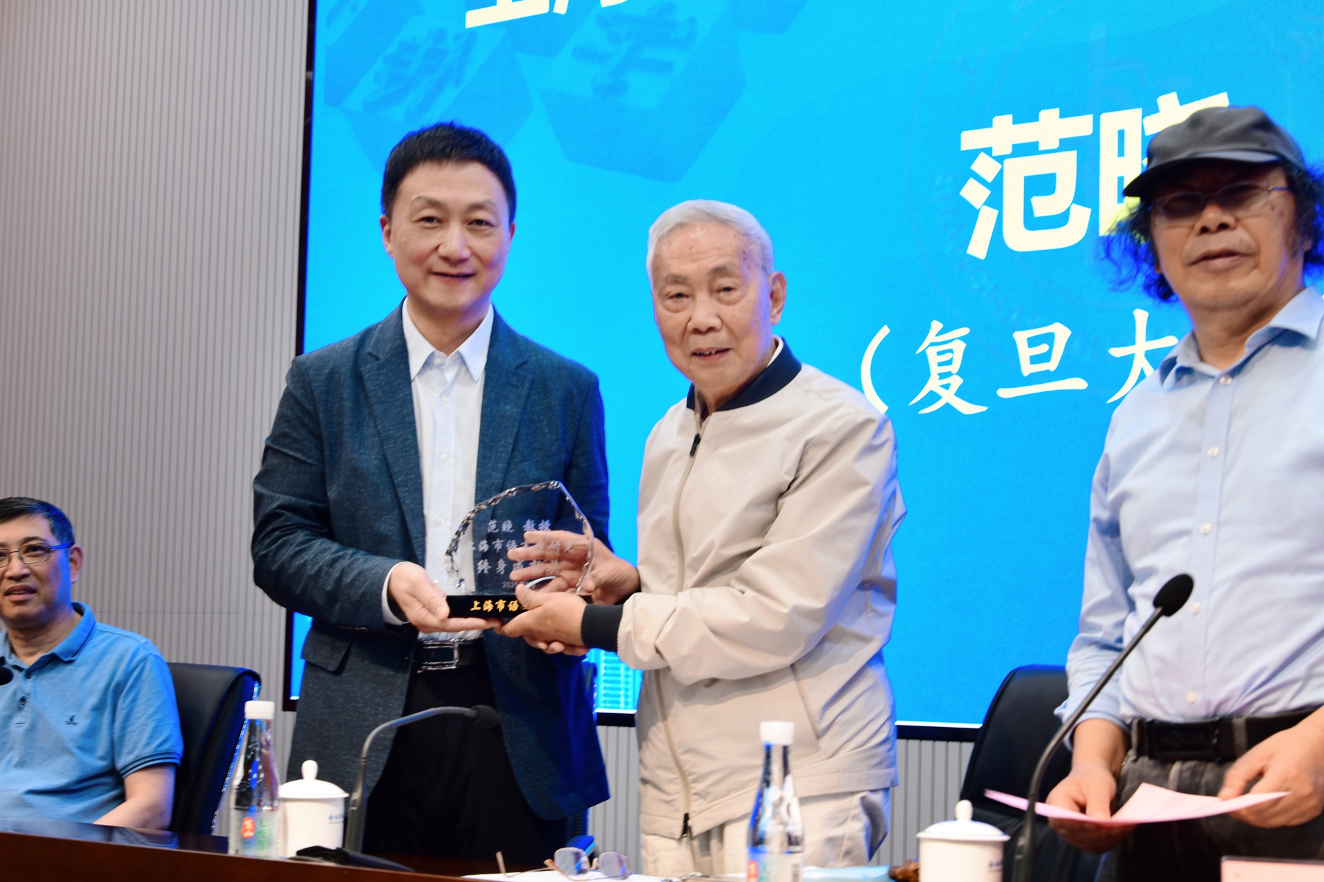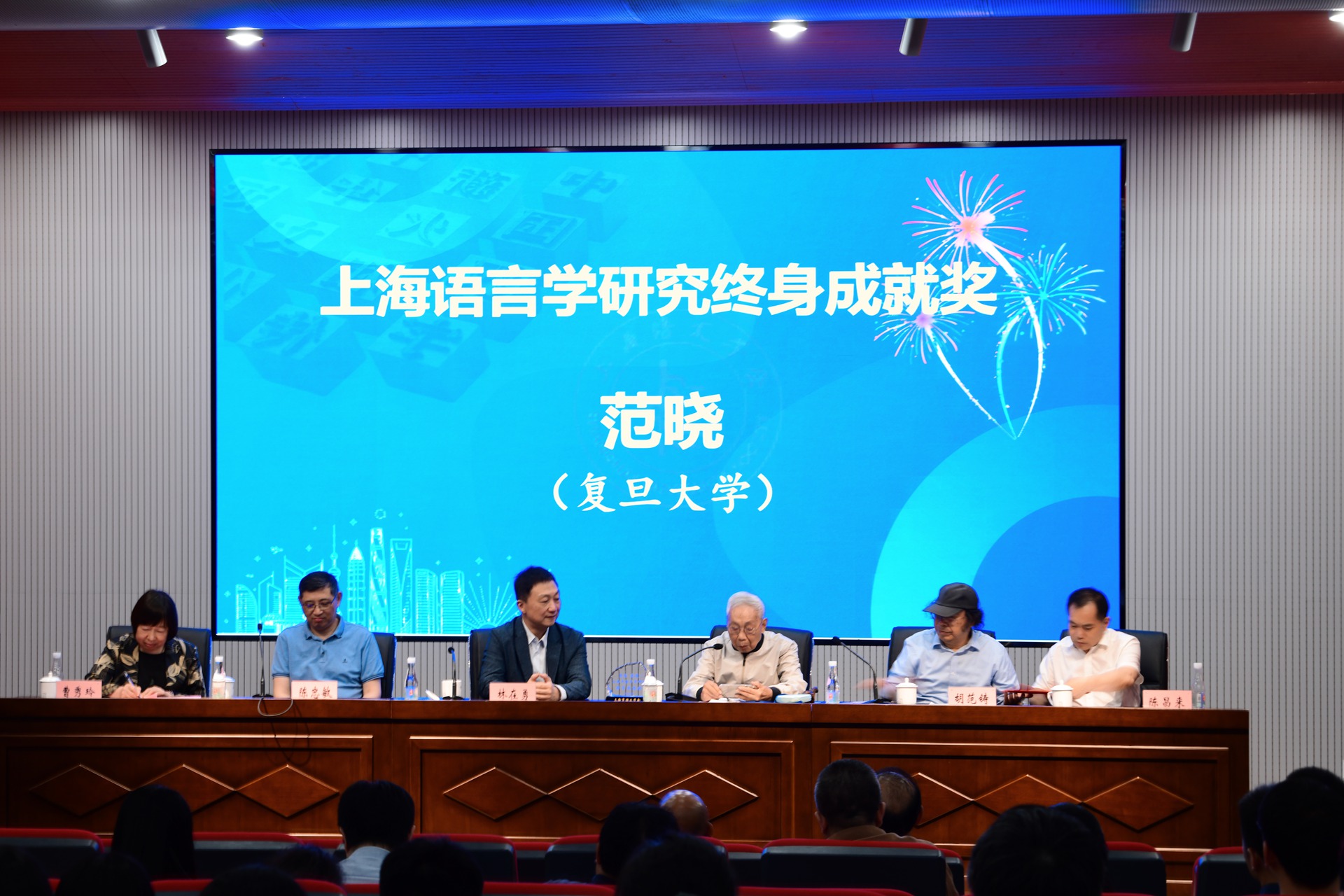 大會最后舉行了頒獎儀式。林在勇等為“上海市第六屆青年語言學論文獎”和“上海語言學研究終身成就獎”獲獎者頒獎。終身成就獎獲得者、復旦大學范曉教授分享了自己從事語言學研究六十多年來的經歷和感悟,激勵更多的學者投身于語言學研究事業。