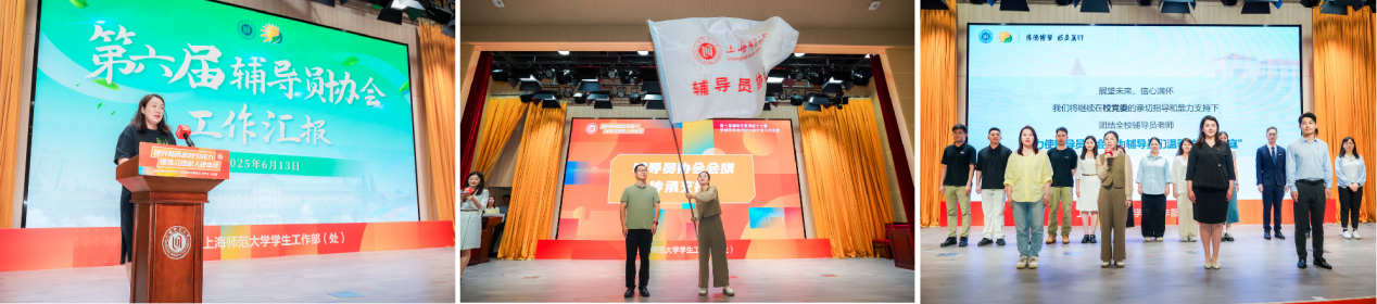 為進一步加強輔導員團隊建設,第七屆輔導員協會啟動儀式在賽后舉行。第六屆輔導員協會主席、心理學院黨委副書記吳瑋作工作報告,第六屆與第七屆輔導員協會主席團代表交接輔導員協會旗幟。第七屆輔導員協會成員在協會主席、教育學院輔導員耿婕的帶領下登臺亮相并介紹了新一屆輔導員協會的組織架構和未來展望。他們表示將以實干詮釋擔當,帶領我校輔導員隊伍更加團結、更加專業,為學生工作注入新活力、新動力。
