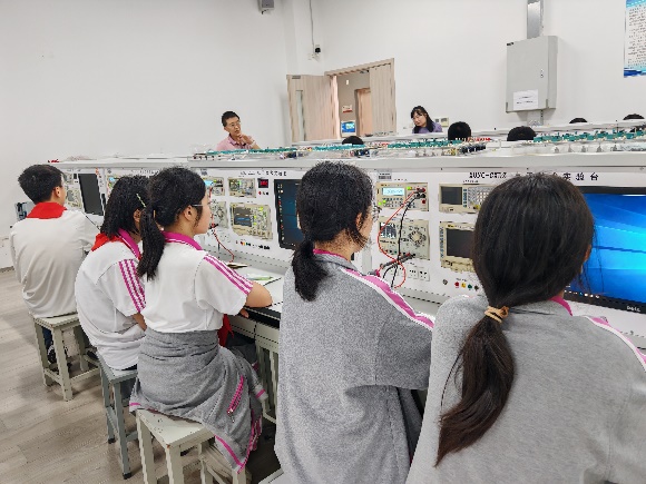 大學(xué)實(shí)驗(yàn)室探秘。在教師帶領(lǐng)下,學(xué)生們走進(jìn)專業(yè)實(shí)驗(yàn)室,親手操作實(shí)驗(yàn)設(shè)備,完成基礎(chǔ)電路實(shí)踐,搭建中學(xué)與大學(xué)教育的認(rèn)知橋梁。