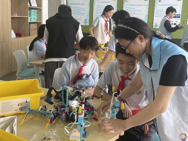 學(xué)生黨員激活前沿。人工智能+教育特色黨支部的學(xué)生黨員及入黨積極分子成為科技探索的主力軍。他們組織的人工智能STEM教育宣講團(tuán)以飽滿熱情和前沿知識,承擔(dān)講解、指導(dǎo)與互動任務(wù)。