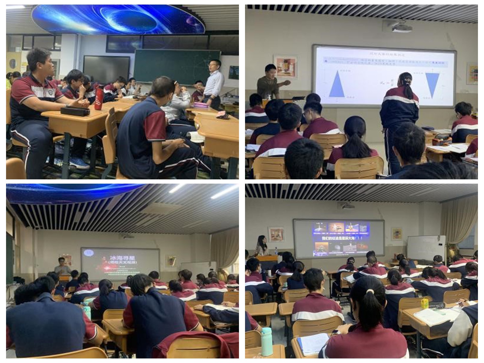 教授們為上海師大附中量身打造的課程,注重知識傳遞與科學精神啟迪的雙重目標。課程設計緊扣“科學教育加法”理念,精準對接拔尖人才的培養核心。教授們不僅講授前沿知識,更注重思維方式的引導與科研素養的培育。例如,杜偉副研究員在《宇宙學距離》課堂中,以理論推導結合觀測數據,引導學生建立嚴謹的科研邏輯;陳竹副研究員在《AI與天文數據》講座中揭示處理海量天文圖像的技術路徑,激發學生對計算科學的濃厚興趣。學生筆記中密密麻麻的公式推導與手繪星圖,是他們不斷突破知識邊界的見證。 “每次的天文課都很有意思,這是我每周最期盼的課。” 高一(4)班孫一茜表示,她從小就對天文充滿興趣,但此前鮮有機會深入學習;如今在大學教授的引領下,她得以系統拓展知識視野。高一(10)班龔子謙說“上師大的教授與研究人員前往南極進行天文觀測”,這令他印象深刻,“人類不斷探索宇宙,科技不斷進步,我們這代人也將擔任起對宇宙探索的重任”。 高一(3)班學生吳凌憶在課后感慨道:“常伊人老師的報告讓我對探月和我國衛星發射的研究歷程有了新的認識。早年探索期間我國衛星發射研究也并非一帆風順,也有過失敗的經歷”。高二(7)班陳宇杰表示,“在課堂上,我印象最深的是歷代科學家對宇宙的不懈探索,他們為了科學為了真理而不懈追求,一點一點拓寬了人類的認知邊界。在接下來的課程中,我將學習感悟并繼承這種科學精神,嚴謹務實、不斷求索,并且吸收更多天文學的知識”。