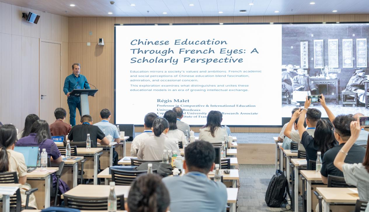 法語(yǔ)國(guó)家比較教育研究協(xié)會(huì)主席、法國(guó)波爾多大學(xué)教師教育培訓(xùn)學(xué)院Régis Malet教授主要從法國(guó)學(xué)者的視角,探討了中國(guó)教育體系的特點(diǎn)、中法教育的異同,以及雙方在教育交流中面臨的機(jī)遇與挑戰(zhàn)。他指出,中國(guó)教育歷史悠久且重視傳統(tǒng),體系嚴(yán)格且競(jìng)爭(zhēng)激烈,學(xué)生和家長(zhǎng)在教育上都投入巨大的精力。在兩國(guó)教育異同方面,他認(rèn)為兩國(guó)都認(rèn)為教育是社會(huì)流動(dòng)的重要階梯,家長(zhǎng)都密切關(guān)注孩子的學(xué)業(yè),并且都高度重視教育成就。但是兩國(guó)在師生關(guān)系、學(xué)習(xí)方法以及課余時(shí)間安排上也呈現(xiàn)出明顯的不同之處。Malet教授贊賞中國(guó)學(xué)生在國(guó)際考試中的優(yōu)秀成績(jī),但也擔(dān)憂教育中的激烈競(jìng)爭(zhēng)會(huì)給學(xué)生帶來(lái)心理壓力,可能會(huì)影響學(xué)生的創(chuàng)造力,并關(guān)注到中國(guó)正在進(jìn)行的一些教育改革。最后,Malet教授認(rèn)為兩國(guó)應(yīng)當(dāng)相互借鑒學(xué)習(xí),通過(guò)交流項(xiàng)目、科研合作和學(xué)生流動(dòng)等方式,中法兩國(guó)可以在教育理念之間架起橋梁,實(shí)現(xiàn)相互豐富和集體創(chuàng)新,共同構(gòu)建教育的美好未來(lái)。