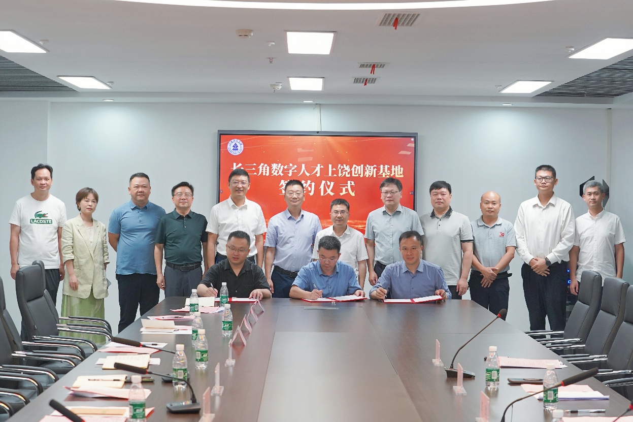 6月21日,長三角數字人才上饒創新基地簽約儀式在上饒師范學院數字技術應用產業學院舉行。上饒師范學院黨委書記陳洪生,上海師范大學黨委常委、副校長李曄,上饒市數據局副局長毛政民等領導出席儀式并致辭,上海師范大學信息與機電工程學院副院長(主持工作)潘建國、上饒師范學院數字技術應用產業學院院長黃益賓、上饒市數字技術應用協會會長毛懿共同簽署合作協議。